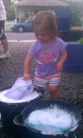 | "I'll let daddy use the sponge, I like using my hands a lot better!" |